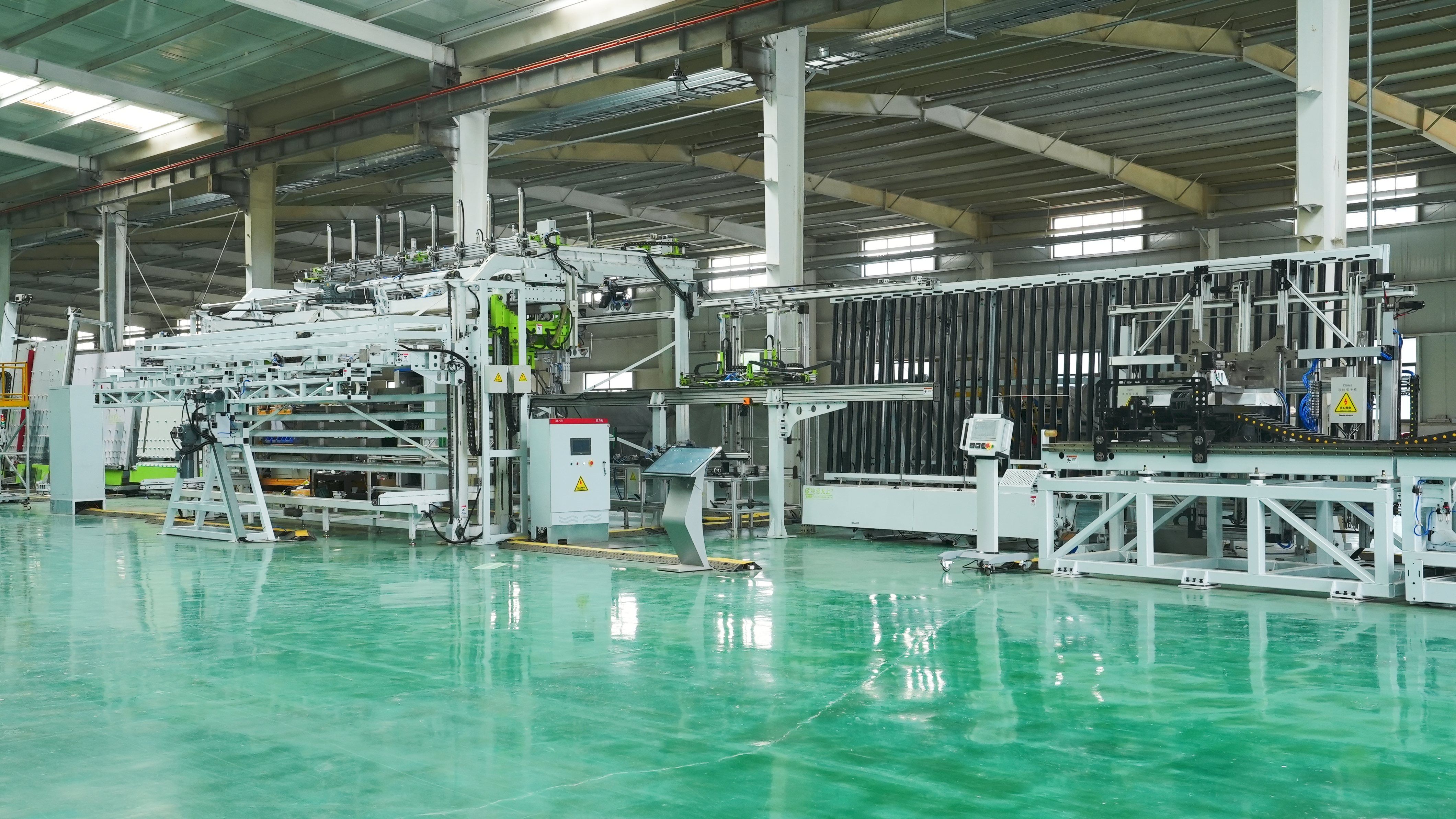 步驟一:涂布完成后的間隔條框通過傳送帶輸送至中空玻璃智能上框機工位;